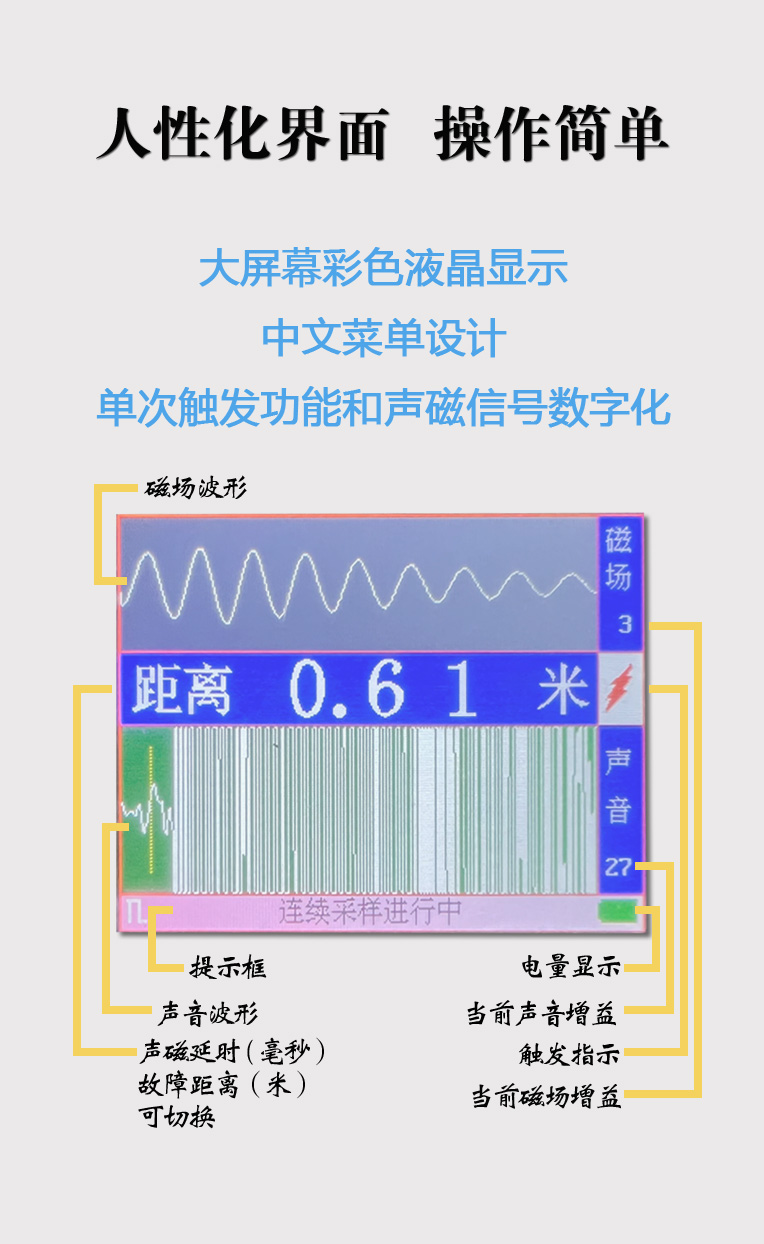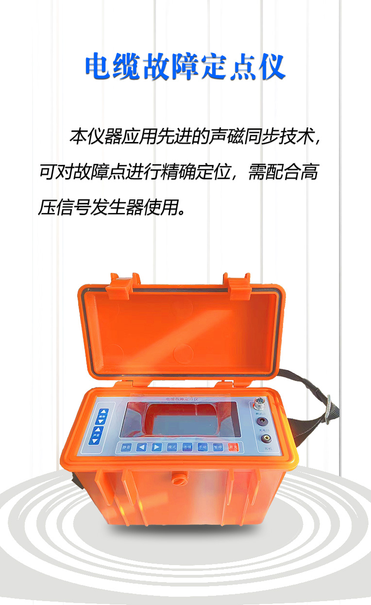 电缆故障定点仪需配合高压信号发生器使用,此款仪器应用先进的 声磁同步技术,可对故障点进行精确定位。