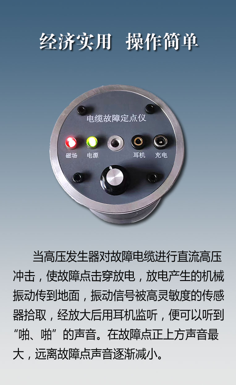 电缆故障定点仪需配合高压信号发生器使用,此款仪器应用先进的 声磁同步技术,可对故障点进行精确定位。